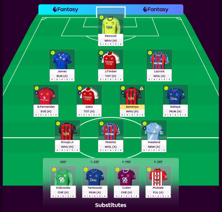 Η προηγούμενη αγωνιστική ήταν εκείνη που ξύπνησα με μια περίεργη διάθεση να στείλω το Bench Boost στο διάολο, επειδή “σιγά το τσιπ”. Όντως έγινε αυτό, κι ας μην με πιστεύει κανείς. Μακάρι να το είχα κάνει, γκολ και μπόνους Τζος Κούλεν μαζί με ασίστ Μουκιέλε δεν νομίζω να ξαναδώ την ίδια αγωνιστική. Το κρατάω ωστόσο, με την πρώτη ευκαιρία που θα έχω ξανά benchboostικές ορμές, θα αφήσω το σώμα μου ελεύθερο.