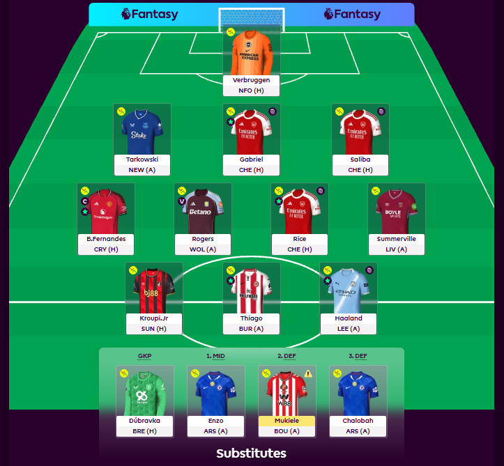 Μια απόφαση που πρέπει να παρθεί είναι η άμυνα της Άρσεναλ. Να έχω τον Γκάμπριελ μέσα μόνο του έχει νόημα μόνο εφόσον βάζει γκολ ενώ τα τρώει. Ίσως απλά να κρατήσω Σαλίμπα και να φέρω Βαν Ντάικ στον Βραζιλιάνο ασπροδόντια. Ή να φέρω Σενέσι στον Μουκιέλε;