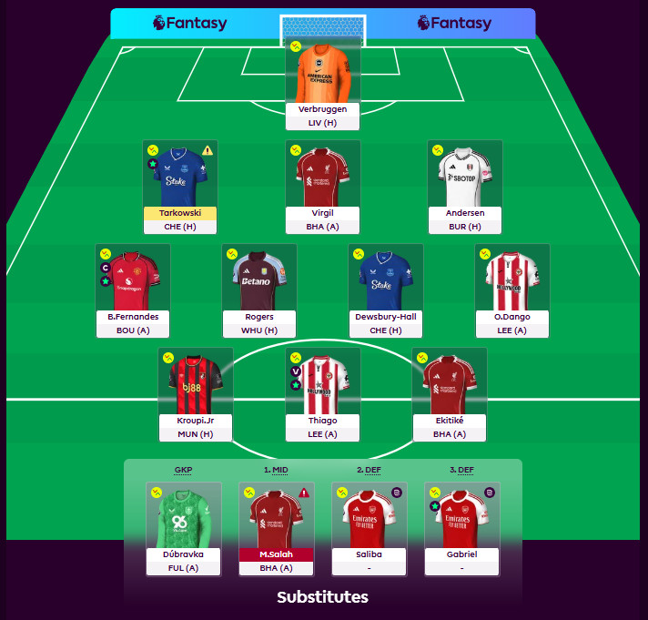 Ένα τραυματίας, τρεις αμφίβολοι και δύο που δεν παίζουν. Μία είναι η μεταγραφή, θα πήγαινε σε έναν αμυντικό εξ αρχής, κάποιον μεταξύ Άντερσεν και Τιό. Ο δεύτερος μόλις έφαγε επτά, ίσως και να μην είναι η πιο σοφή επιλογή. Στον ορίζοντα υπάρχει και η ιδέα του τσιπ. Οκτώ αγωνιστικές έχουν μείνει, μία κάρτα, ένα Free Hit, ένα Triple Captain. Κάποια στιγμή θα πρέπει να παικτούν. Είναι αυτή η στιγμή τώρα; Η Παρασκευή έρχεται και νιώθω ο κλοιός να σφίγγει όσο παιρνάνε οι ώρες, δεν υπάρχει χρόνος. Δεν είμαι έτοιμος, δεν προλαβαίνω να κάνω όλα όσα θέλω να κάνω.