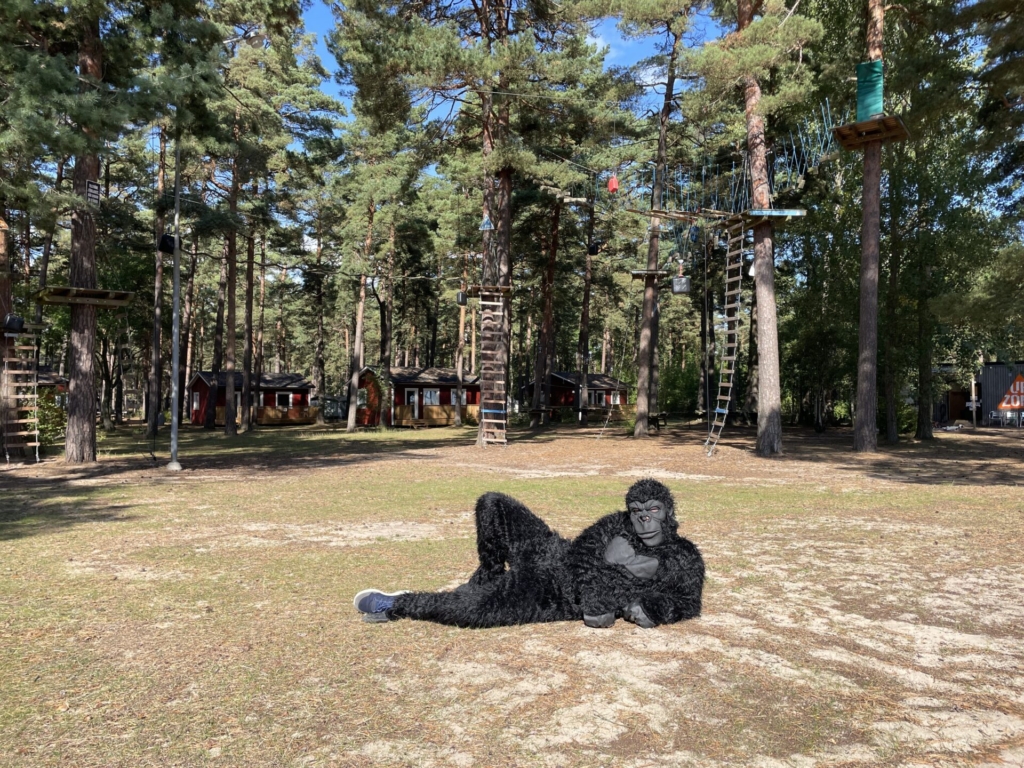 Ο αντιπερισπασμός που χρειαζόμουν για να μην αγχωθώ για μια ακόμη φορά πριν το deadline. Ξυπνήσαμε νωρίς το πρωί, τον απαγάγαμε, τον ντύσαμε με τη στολή του γορίλα και μετά από μία ώρα οδήγηση ήμασταν στα δέντρα. Μέχρι 15 μέτρα ύψος φτάσαμε. Κρεμασμένος από ένα zipline 100 μέτρων δεν σκεφτόμουν αν έπρεπε να βάλω αρχηγό τον Σαλάχ ή τον Χάαλαντ και ακροβατώντας πάνω σε ένα σύρμα, μπορούσα να αναρωτιέμαι αν έχει μπλανκάρει ο Γκιόκερες για να μην σκέφτομαι το ύψος. Το τέλειο σχέδιο.