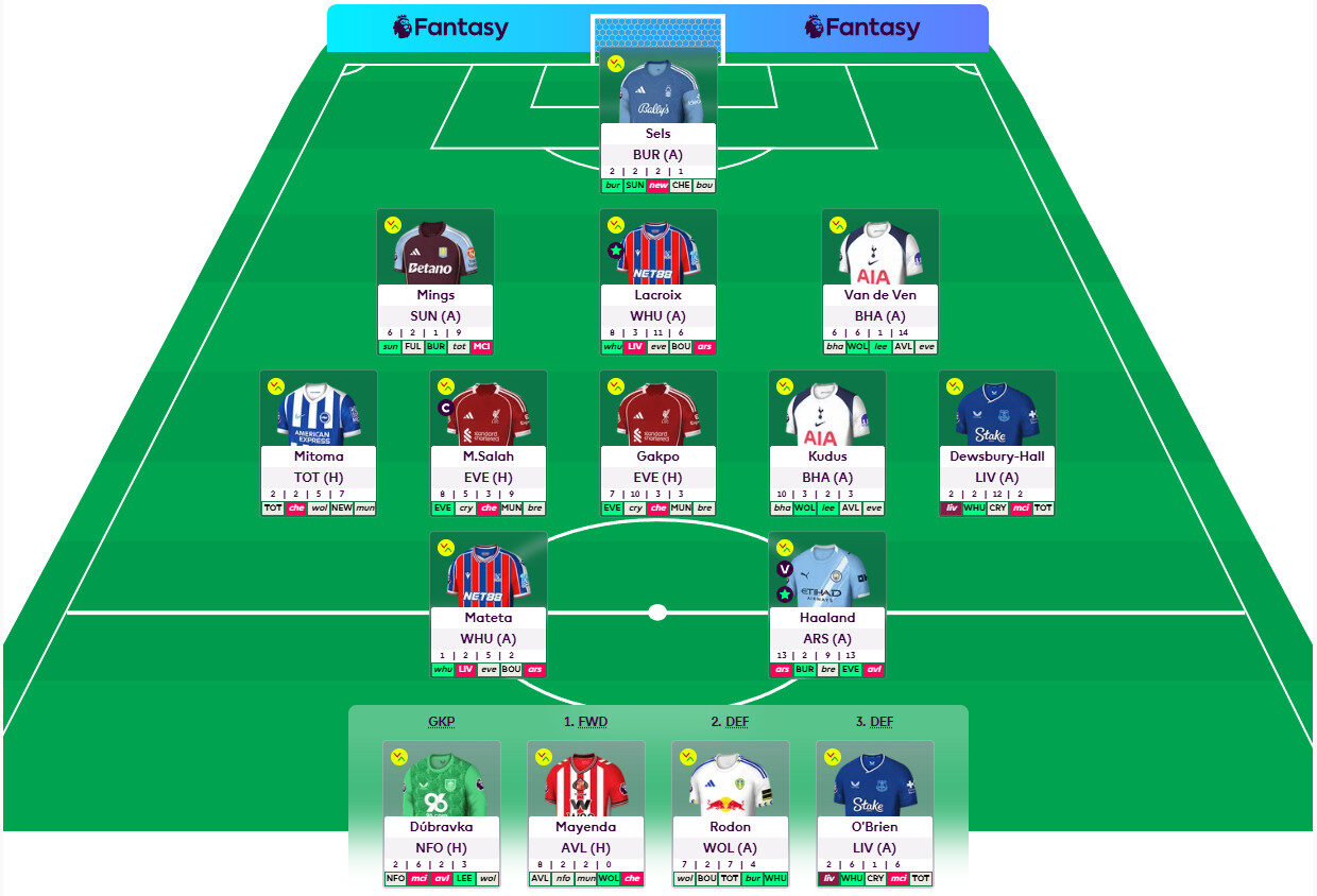 Είναι φαινόμενο φέτος μάλλον μετά από καλή αγωνιστική να παίζουν οι παίκτες μου μεταξύ τους. Χάκπο, Σαλάχ με Ντούσμπουρι-Χολ, Ο’ Μπράιεν, οι Βαν ντε Βεν και Κοντούς έχουν τον Μιτόμα, οι δύο τερματοφύλακες μεταξύ τους.